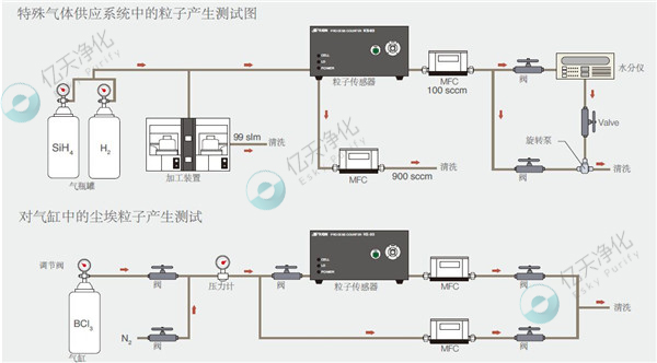 使用在半導體、平板顯示器、太陽能電池和其他行業的產品處理中的許多原材料氣體是有毒、易燃、腐蝕性和活躍性的。比如這些氣體會和水汽發生反應從而輕易產生顆粒物??刂七@些反應從而抑制粒子在特殊氣體中的污染是很有必要的。